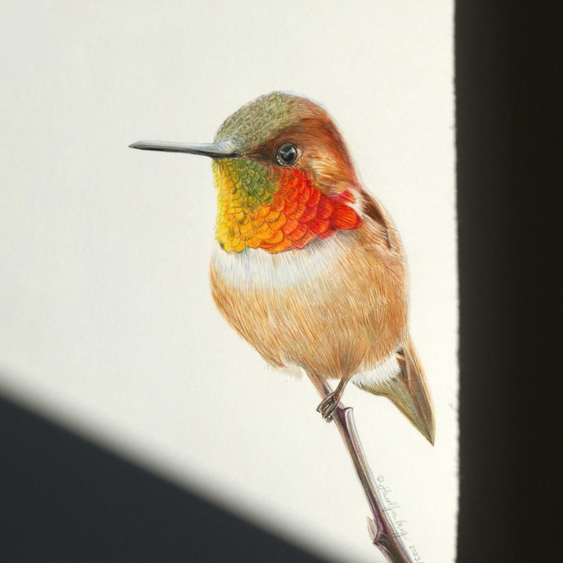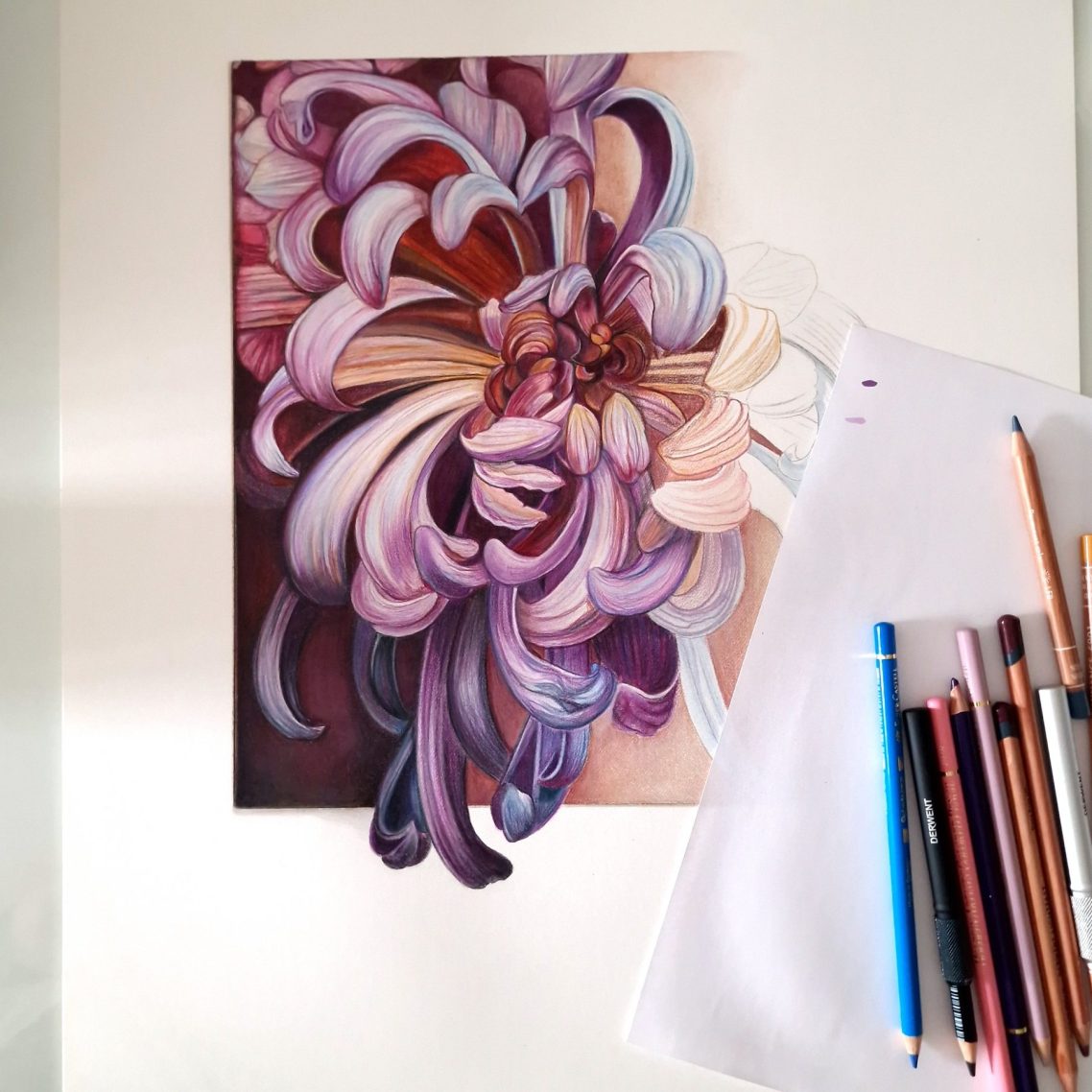 Detaillierte und lebendige Kunstwerke, die mit technisch versierter Buntstifttechnik erstellt wurden.